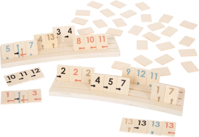 Rummy Gold Edition od SMALL FOOT je brezčasna strateška igra v premijskem izvedbenem slogu. Odlikujejo jo trendovske pastelne barve, prefinjeni zlatni detajli in vidna struktura lesa, zato se odlično poda v modernejši interier in služi tudi kot stilni okras.