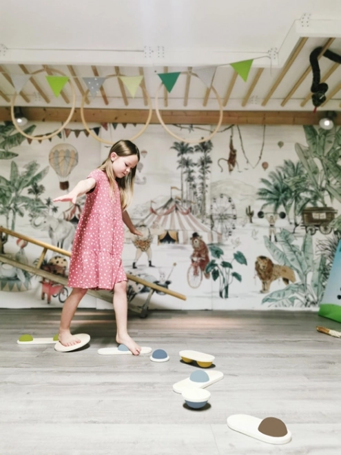 Spremenite otroško sobo v deželo pustolovščin v nekaj sekundah s temi ravnotežnimi kamni Pustolovščina. So izdelani iz trdnega lesa in gumijastih polokrogov, ki na vsakem kosu menjajo položaj za povečanje težavnosti. Lahko uporabite celoten komplet ali le izbrane dele in jih preprosto kombinirate z drugimi izdelki iz linije Pustolovščina za ustvarjanje opičje poti.