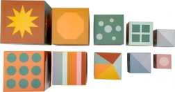 Velikostni razpon kock od najmanjše 5 cm do največje 14 cm uči otrokovo zaznavanje velikosti in razvrščanja. Lahek, čvrst karton je enostaven za držanje in prijazen do pohištva.
