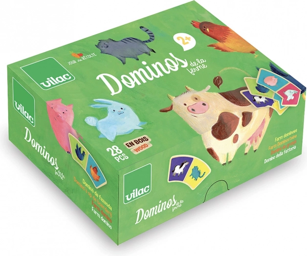 Obogatite igro svojih otrok s tem izvirnim kompletom domina z čudovitim kmečkim motivom znamke Vilac. Zaradi ukrivljene oblike so dominove ploščice ne le edinstvene, temveč tudi enostavne za prijemanje tudi za majhne otroške roke. Set vsebuje skupaj 28 lesenih ploščic, ki bodo zagotovile neskončne ure zabave. Igra domina prispeva k razvoju pozornosti, fine motorike in logičnega mišljenja.