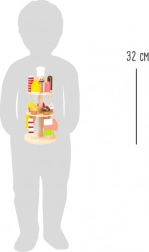 Igra prodajalca sladoleda naravno razvija socialne veščine, komunikacijo in fino motoriko. Stojnica je odličen poudarek na pultu ali polici in je zaradi skrbne izdelave iz masivnega lesa varna ter trpežna.