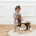 Otrokom podarite brezčasno veselje z lesenim gugalnim konjičkom iz kolekcije Petilou. Robustna konstrukcija, gladki robovi, oporni ročaji in udoben sedež zagotavljajo varnost in udobje pri vožnji. Eleganten dekor z rjavimi in zlatimi poudarki polepša vsak otroški prostor.