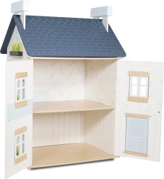 Hiška za punčke Sky podjetja Le Toy Van je izdelana iz visokokakovostnega lesa z ozirom na etične proizvodne prakse. Pobarvana je v nežno belo in pastelno modro barvo, kar jo naredi za dekorativni element vsake otroške sobe. Odpirajoča se okna in dvonadstropna zasnova ponujata nešteto možnosti za domišljijsko igro ter razvoj koordinacije in fine motorike.