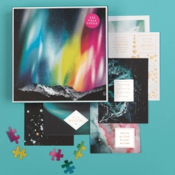 Uživajte v sprostitvi in izzivu s to sestavljanko z motivom kozmičnih luči nad zasneženimi gorami. Set s 500 kosi izstopa po vrhunski kakovosti, natančnem prileganju in netoksičnih črnilih na recikliranem papirju. Idealno darilo za ljubitelje scen z avrorami in za mirne trenutke doma.