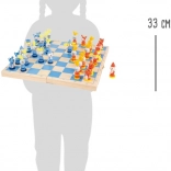 Ta komplet podpira razvoj logičnega razmišljanja, potrpežljivosti in fine motorike. Barvite figure s prijetnim oprijemom otroke motivirajo k učenju pravil in prvih strategij, medtem ko bodo starši cenili kakovostne materiale in trdno izdelavo.