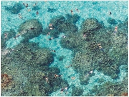 Uživajte v menjavi razpoloženj: živahna plaža iz ptičje perspektive in mirno turkizno morje s čermi. Dvojni vizualni užitek podaljša zabavo in razširi spekter zahtevnosti.