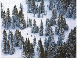 Odkrijte brezčasne zračne posnetke GRAY MALIN v obliki vrhunske dvostranske sestavljanke. Ena stran vas popelje v mirno zimsko scenerijo s zasneženimi drevesi, druga zaživi z dinamiko barvitih smučarjev na bleščeče belem snegu. Vsak košček natančno sede, zato je sestavljanje tekoče in zadovoljivo.