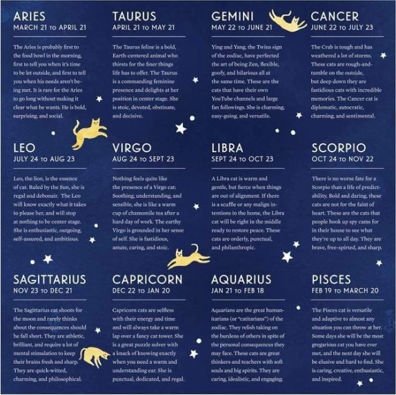 Vsako zodiakalno znamenje je edinstveno upodobljeno in prinaša esenco določenega znamenja v igrivem mačjem stilu.