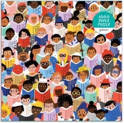 Uživajte ure zabave z umetniško sestavljanko, ki prinaša živahen prizor ljudi, zatopljenih v knjige. Zaradi kakovostne izdelave iz recikliranega papirja in uporabe netoksičnih črnil je ta komplet odlična izbira za družine in ljubitelje dizajna. Končana sestavljanka z merami 68,6 × 50,8 cm bo lepo izstopala tudi v okvirju.
