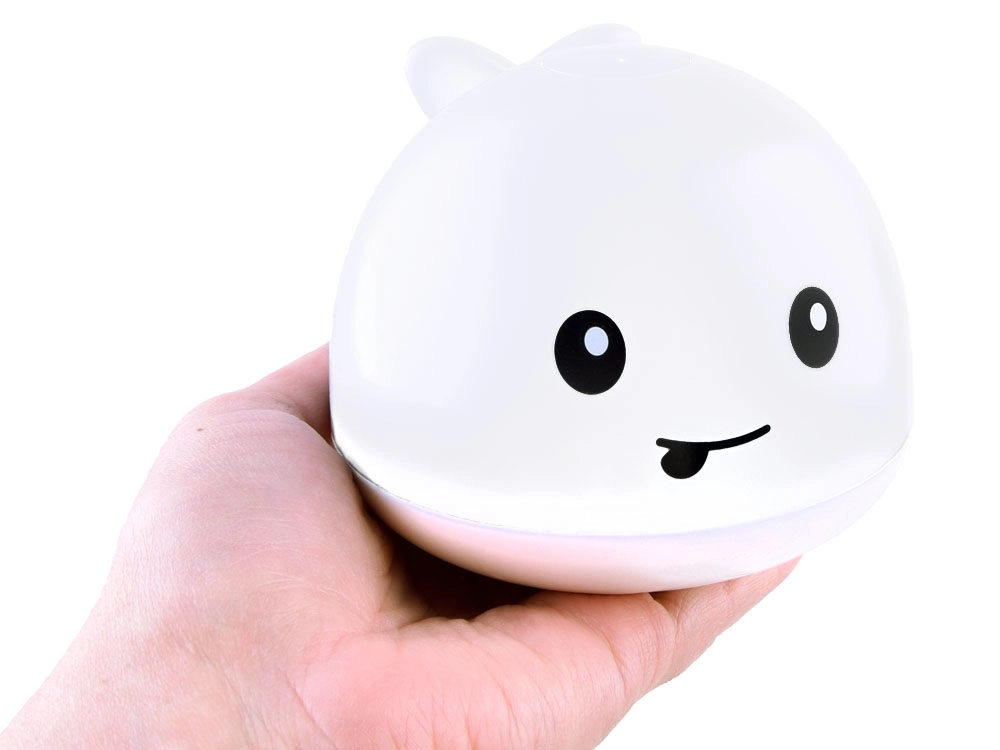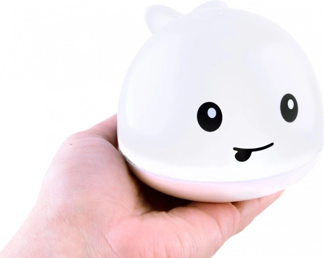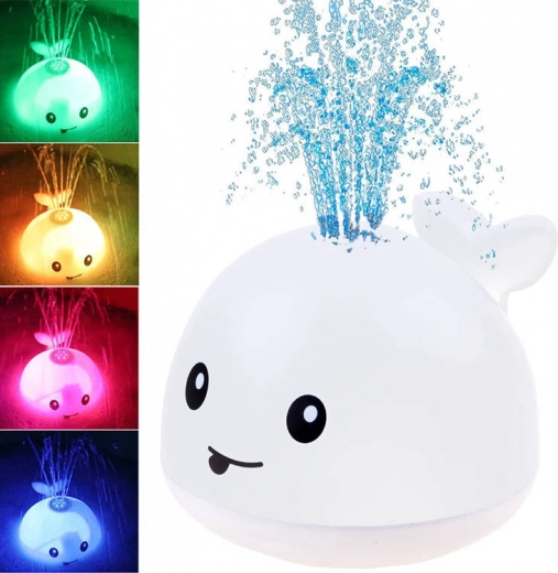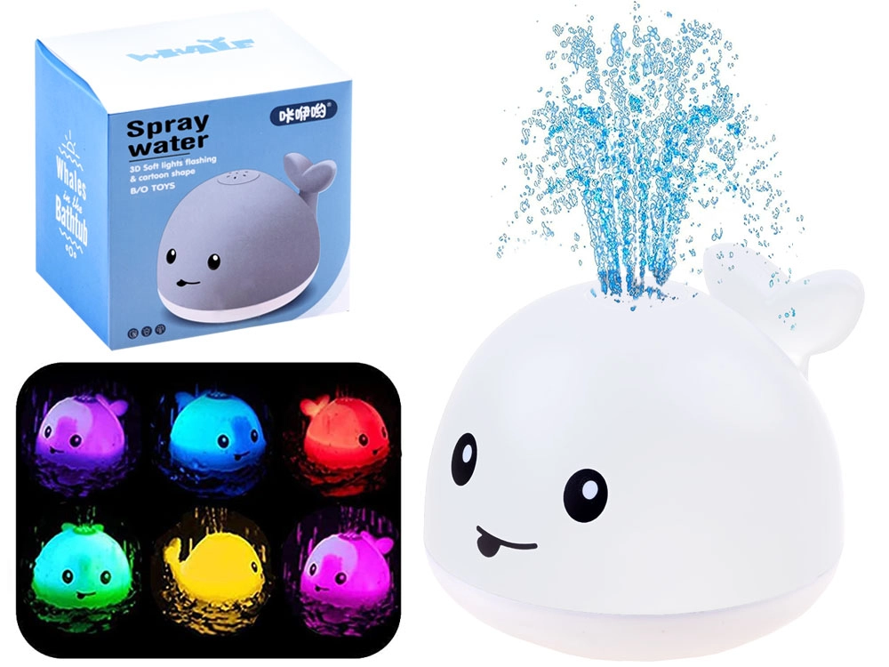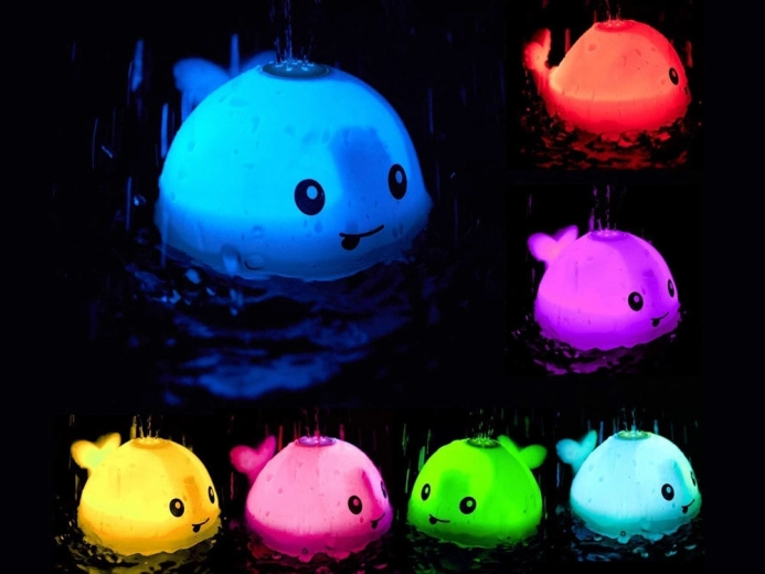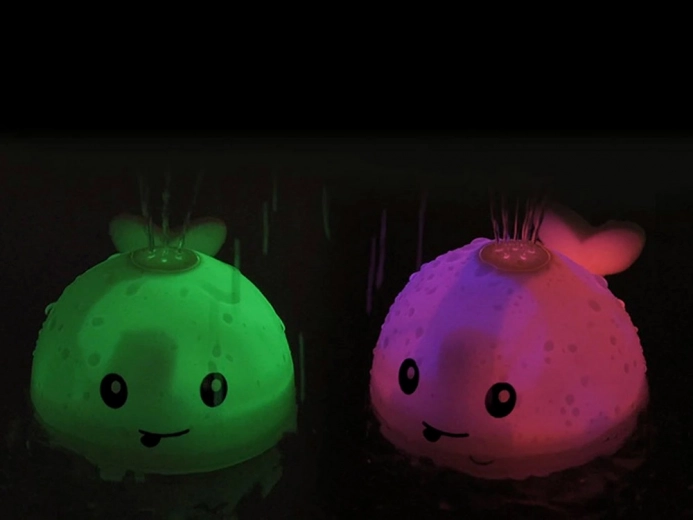 Prisrčni kit preobrazi vsako kopanje v zabavo – ob stiku z vodo se samodejno aktivira, ustvari mini fontano in sveti z barvnimi LED lučmi. Zaradi kompaktnih mer ga malčke zlahka držijo v rokicah in jih spodbuja h kopanju.