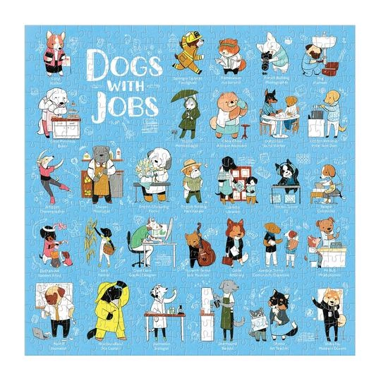 Odkrijte svet pasjih poklicev – od ocenjevalca starin Chow Chowa prek grafičnega oblikovalca nemške doge do meteorologa haskija. Ta oblikovalska sestavljanka je zapakirana v trdne škatle z mat površino, zato je primerna tudi kot stilsko darilo.