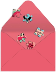 Razgledniške sestavljanke Veliko sreče so ljubko, domiselno in praktično darilo v enem. Prispejo v celoti sestavljene, zato lahko na zadnjo stran takoj napišete svoje sporočilo. Nato jih preprosto razdelite na koščke, vložite v priloženo kuverto in pošljite – obdarovanec bo sporočilo “sestavil” med sestavljanjem.