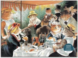 Odkrijte edinstveno sestavljanko, ki združuje umetnost in humor. Parodija na slavno Renoirjevo sliko Zajtrk veslačev v izvedbi mačje umetnice Susan Herbert bo navdušila ljubitelje mačk, umetnosti in kakovostnih sestavljank. Vrhunska izdelava in skrbno izrezani kosi zagotavljajo prijetno izkušnjo pri vsakem sestavljanju.