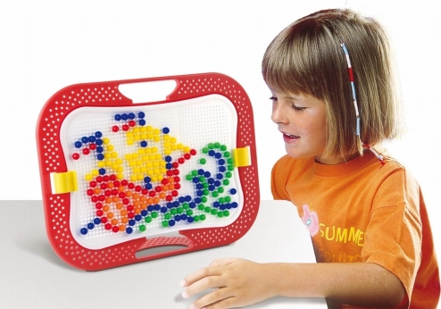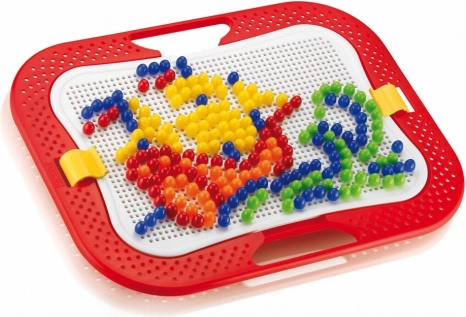Mozaiki pri otrocih razvijajo fino motoriko, ustvarjalnost in domišljijo. Sestavljeni so iz kovčka, perforirane igralne plošče in barvnih gumbkov z glavicami različnih barv, premerov in oblik. S pomočjo teh gumbkov, ki se vstavljajo v odprtine na igralni plošči, otroci ustvarjajo različne slike ali vzorce. Po koncu igre je mogoče vse shraniti v kovček, katerega pokrov po zavarovanju z zapiralom tvori samo igralno ploščo. Izdelano iz vrhunskih plastičnih materialov. Glavne lastnosti: razvija fino motoriko, ustvarjalnost in domišljijo, vsebuje 300 gumbkov s premerom 10 mm, praktičen kovček za shranjevanje.