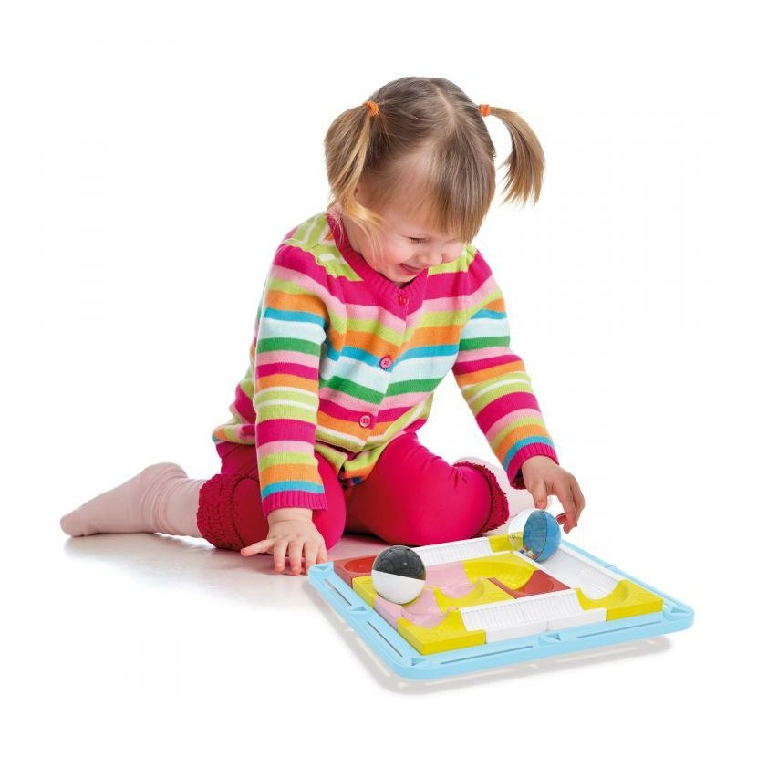 Vodenje kroglic preko ovir izboljšuje prijem, natančnost gibov in koordinacijo oko–roka pri najmlajših.