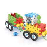 Sestavljajte iz ploščic in zatičev avtomobilčke, hiške in drevesa! Ta inovativni gradbeni set vsebuje med seboj povezljive ploske 3D dele in velike zatiče različnih barv, s katerimi lahko tudi majhni otroci sestavljajo različne avtomobilčke, hiše, stolpe, drevesa in še veliko drugih stvari. Med skupno 62 elementi kompleta je tudi 8 koles za podvozja avtomobilčkov in 3 vrvice, s katerimi lahko avtomobilčke vlečete. Poleg različnih avtomobilčkov omogoča komplet ustvarjanje tudi raznolikih ploščatih in tridimenzionalnih struktur, s čimer pri otrocih od 2 do 6 let vadi in razvija fino motoriko, koordinacijo oko–roka in prostorsko orientacijo ter hkrati podpira njihov kognitivni razvoj. Vsebina pakiranja: 20 med seboj povezljivih ploskih 3D delov, 16 med seboj povezljivih zatičev, 8 koles, 3 vrvice za vleko avtomobilčkov. Glavne lastnosti: razvija fino motoriko, ustvarjalnost, domišljijo in logično-kombinatorično mišljenje; pakiranje vsebuje 52 delov; za otroke od 2 let dalje. Dimenzije pakiranja: 40×34×9 cm. Starost: 2+. Material: plastika. Vsebuje 62 delov.