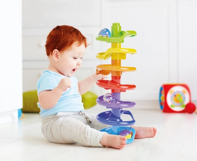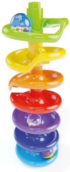 Spiralni stolp vsebuje velike in barvne dele, ki so varni za majhne otroke. Zaradi tega se lahko brezskrbno igrajo in razvijajo čutno zaznavanje.