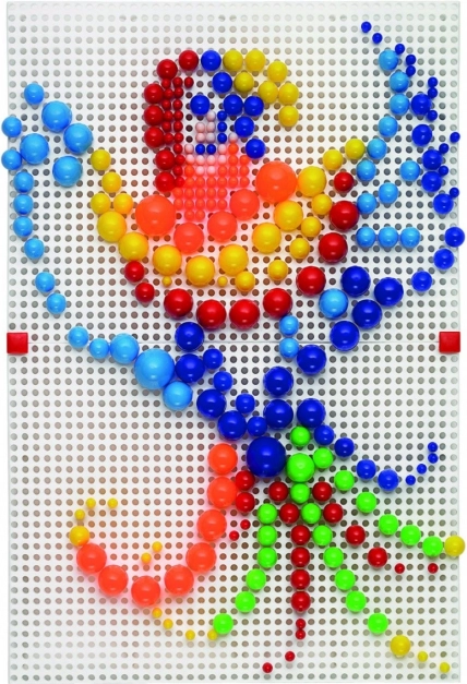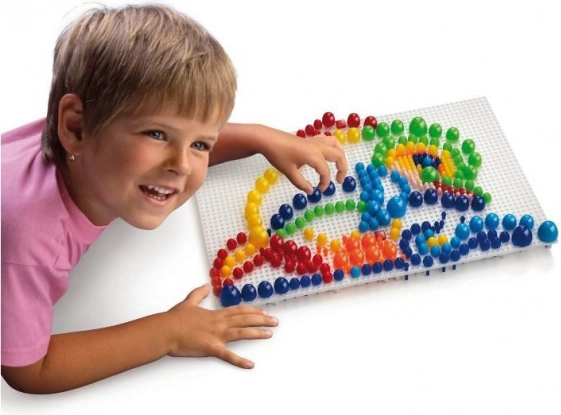 Vsebuje 300 žebljičkov v sedmih barvnih odtenkih, ki omogočajo ustvarjanje privlačnih mozaikov.