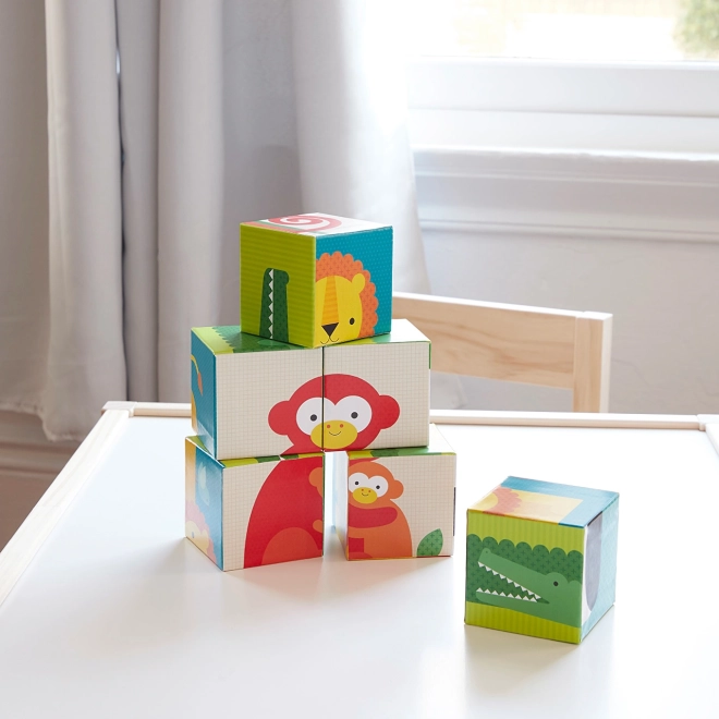 Kocke z živalmi od Petit Collage bodo vašim otrokom zagotovile ure zabave. Te pisanobarvne kocke z različnimi živalskimi motivi pomagajo razvijati senzomotorične veščine in domišljijo.