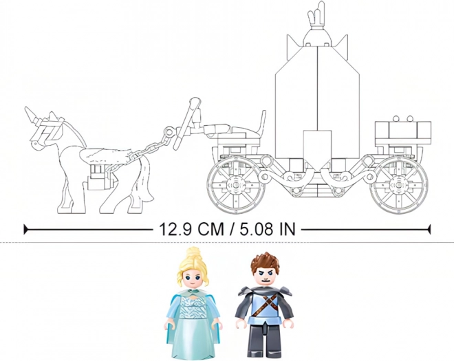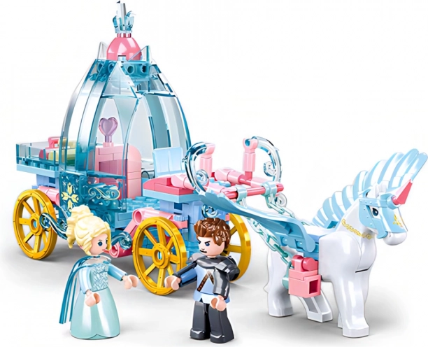 - Gradbeni komplet kočije s samorogom, 2 figurici, navodila