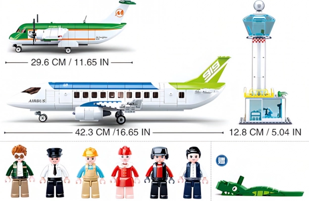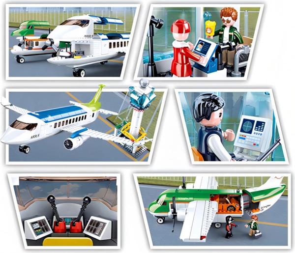 Ta kreativna sestavljanka Sluban iz letalske serije prinaša celoten letališki prizor: veliko potniško letalo, manjše letalo, kontrolni stolp, premična vozila in 6 podrobnih figuric posadk in delavcev. S 731 kosi in srednjo zahtevnostjo je idealna za otroke od 6 let naprej in igrive starše. Deli so izdelani iz kakovostnega, zdravstveno neoporečnega ABS plastika in se zlahka kombinirajo z deli znanih sestavljank.