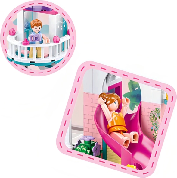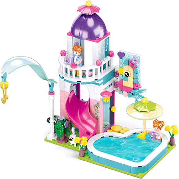 Odkrijte čar sestavljanke Sluban hiška s toboganom v bazen z 230 deli in dvema figuricama, zasnovane za srednjo zahtevnost. Figurice so inovativne z gibljivimi deli, celoten set pa je izdelan iz kakovostne in zdravju neškodljive ABS plastike.