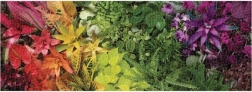 Očarljiv motiv vrta s cvetovi in listi v mavričnih odtenkih ponuja čudovit dekorativni učinek.
