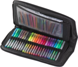 Velik komplet gel pisal prinaša neskončne možnosti ustvarjanja. Zahvaljujoč živim in obstojnim barvam bodo vaši zapiski in ilustracije vedno izraziti in čisti. Organiziran tekstilni etui na zadrgo ohranja vse pregledno na mestu doma, v šoli in na poti.