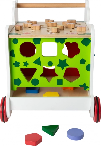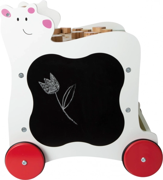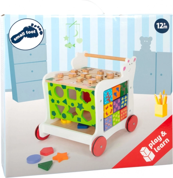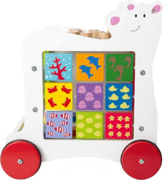 Zaradi gumiranih koles je premikanje tiho in prijazno do vseh vrst tal. Hojica ponuja tudi shranjevalni prostor za kocke in drobnarije, zato je igralni kotiček vedno hitro pospravljen.