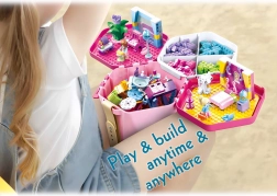 Komplet kock Sluban v rožnatem vedru prinaša ure zabave in razvijanja domišljije. Prenosna embalaža s pokrovom – gradbeno podlago – omogoča gradnjo kjerkoli in kadarkoli. Zaradi nizke zahtevnosti je idealen za otroke od 4. leta dalje, z združljivostjo z LEGO, COBI in MEGA BLOKS pa zlahka razširite svojo zbirko.