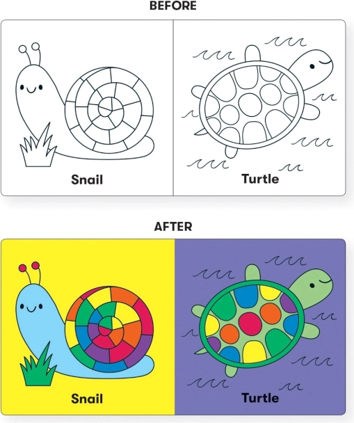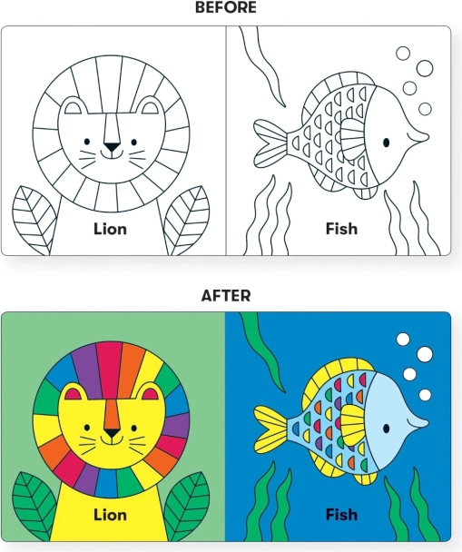 Odkrijte edinstveno knjižico za vodo, ki kopanje spremeni v priljubljen ritual. Dovolj je, da jo potopite, in ilustracije se v hipu obarbajo v živahne odtenke. Mere 15 × 15 × 3 cm in mehak material so idealni za drobne otroške roke.