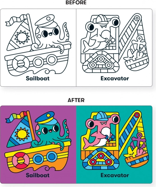 - Interaktivni barvni učinek – slike se po namočenju razsvetlijo in postanejo vidnejše.