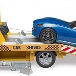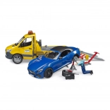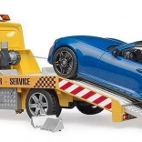 Vlečno vozilo BRUDER na osnovi MB Sprinter navduši z dovršeno izdelavo in bogato funkcionalno opremo. Otroke razveselijo rotacijska luč s svetlobo in zvokom, realistična rampa z izvlečnimi drsniki in zapornimi klini ter odpirajoča se vrata in stranske omarice. Del kompleta je športni kabriolet z odstranljivo streho in zamenljivimi kolesi.