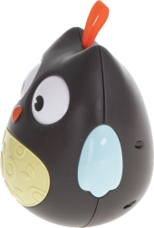 Kontrastni detajli, velike gibljive oči in nežno rožljanje notranjih zvončkov naravno pritegnejo pozornost. Različne strukture površine in praktična zanka na vrhu razvijajo fino motoriko in tipno zaznavo.