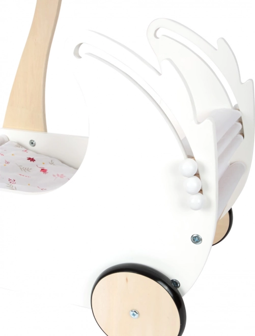 Ta voziček s svojo labodjo obliko in cvetličnimi motivi dopolnjuje estetiko vsake otroške sobe.