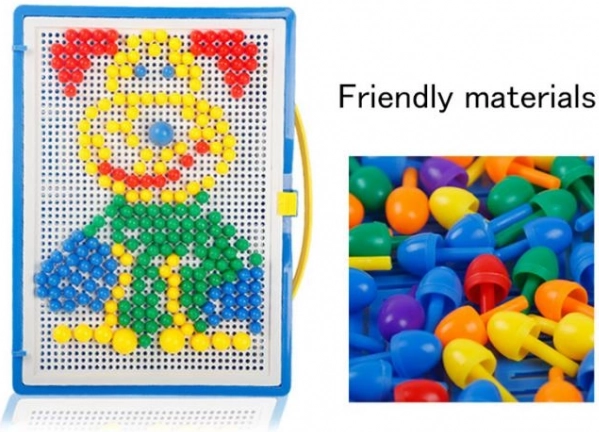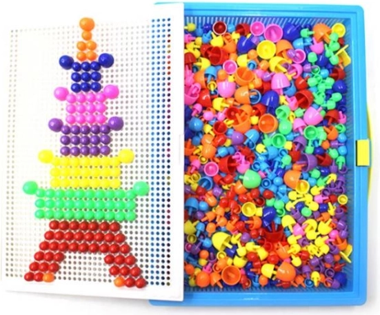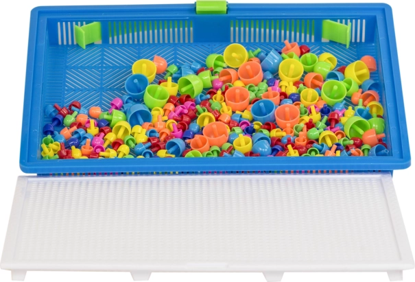 Ta igrača je priljubljena pri generacijah otrok in nostalgično obujena pri odraslih. Enostavna zasnova, sestavljena iz barvnih plastičnih gobic različnih velikosti in perforirane plošče za njihovo vstavljanje. Vse je shranjeno v prenosljivem kovčku, da lahko vaš otrok vzame svojo najljubšo igračo kamorkoli.