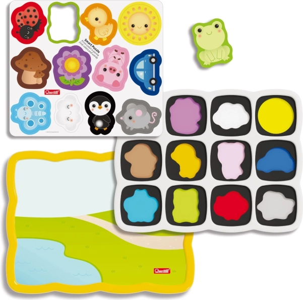 Quercetti Smart Puzzle Magnetico je idealna igrača za najmlajše otroke, ki ni le zabavna, temveč tudi izobraževalna. Ta igriva set, namenjen otrokom od 12 mesecev, vsebuje tablo z 12 magnetnimi koščki, ki jih je mogoče preprosto vstaviti v pripravljene odprtine, s čimer se spodbuja prepoznavanje oblik in barv.