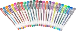 Ta vsestranski set gelnih pisal je idealen za otroke, študente in odrasle. Vsebuje 25 skrbno izbranih kosov: 12 bleščečih za efektno okraševanje, 7 kovinskih za stilske poudarke, 3 fluorescentna za izrazito poudarjanje ter 3 klasične barve (črna, modra, rdeča) za vsakodnevno pisanje. Prosojno ohišje omogoča nadzor nad nivojem črnila, nežen vrh pa zagotavlja natančne linije.