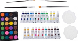 Paleta 24 akvarelnih barv, 24 barv v tubah, čopiči in dve plastični paleti – popolna oprema za vodne in prekrivne tehnike.