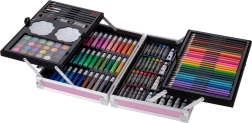 Ta univerzalni komplet ponuja kar 145 delov, s katerimi ustvarite slike v različnih tehnikah: risanje s svinčniki in barvicami, slikanje z akvarelom in intenzivnimi barvami v tubah, barvite ilustracije s flomastri ali delo z oljnimi pasteli. Vse je pregledno shranjeno v trpežnem kovčku z zapirali in ročajem, zato opremo zlahka vzamete s seboj kamor koli.