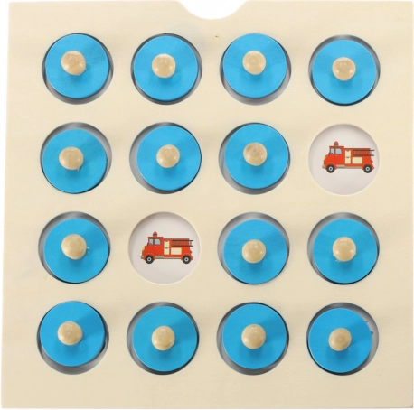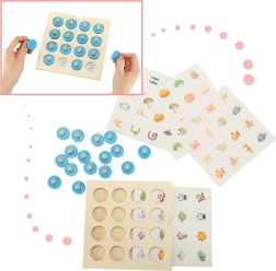 Lesena spominska igra je odlična izbira za združitev zabave in učenja. Igra ima preprosta pravila, ki so razumljiva tudi najmlajšim. Dovolj je izbrati karto, si zapomniti položaj različnih oblik in jih pokriti z modrimi pokrovčki. Nato odkrivajte po dve in iščite ujemajoče se pare!