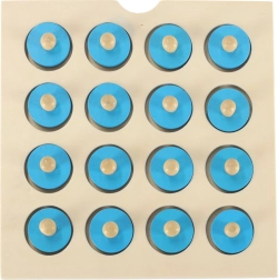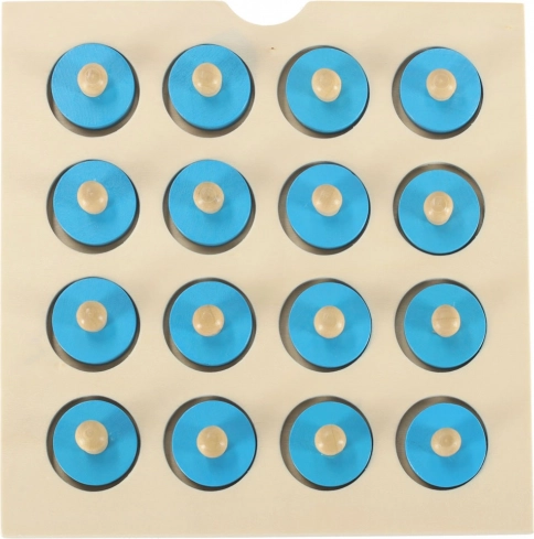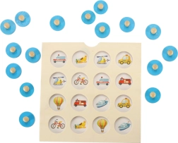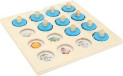 Lesena igralna plošča s plastičnimi žetončki, okrašenimi z motivi astronavtov, raket in planetov. Služi kot izobraževalna igrača za razvoj spomina in kognitivnih sposobnosti.
