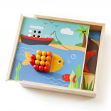 Odkrijte zabavno mozaiko z motivi plaže, ki razvija otrokovo domišljijo in spretnosti. Vsebuje 4 slike in 96 zatičev v 8 barvah, ki jih otroci zlagajo na pokrov praktične škatle. Igra spodbuja prepoznavanje barv, fino motoriko, zbranost in logično razmišljanje. Izdelano iz kakovostnega, odgovorno pridobljenega lesa – prijetno na dotik in idealno za na pot.