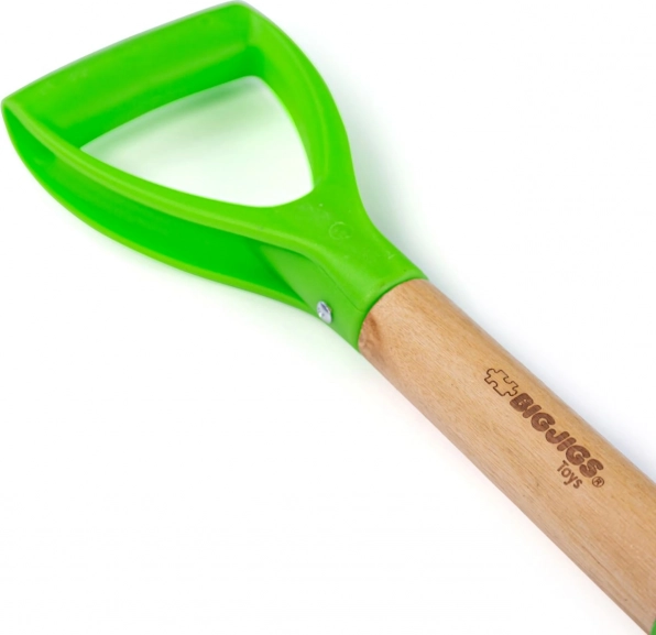 Otroška lopata Bigjigs Toys je idealna za male vrtnarje in graditelje. Opremljena je s kratkim ročajem za enostavno uporabo in robustno kovinsko glavo za učinkovito kopanje. Zahvaljujoč leseni ročici s plastičnim ročajem je prijem trden in udoben.