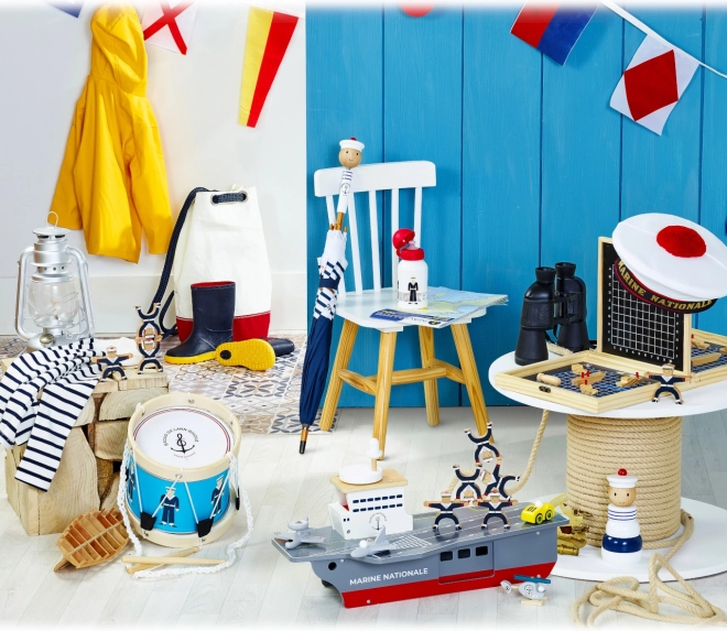 Prinesite košček mornarskega vzdušja v otroški svet s to leseno sestavljivo stolpnico. Zaradi robustne konstrukcije je trpežna in idealna za majhne otroke. Kombinacija barv bele, modre in naravnega lesa je privlačna in hkrati umirjena.