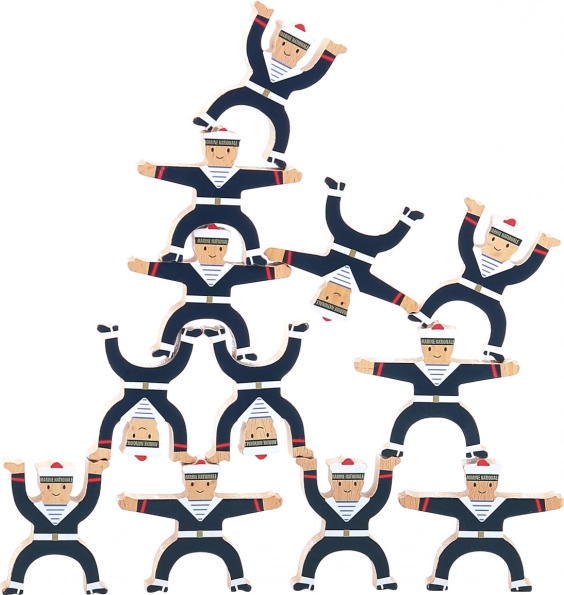 Z lesenimi figuricami mornarjev lahko gradite stolpe in strukture, kar spodbuja ustvarjalnost in fino motoriko.