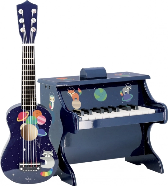 Vesoljska kitara ne ponuja le estetskega užitka, temveč je tudi funkcionalna igrača, ki jo lahko uporabljate za kreativno igro in glasbeni razvoj. Odlično dopolnjuje Mavrično piano, s katerim tvori celovito zbirko inštrumentov za otroke.