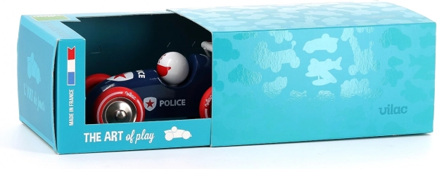 Vilac vlečni policijski dirkalni avto je izvirna igrača, ki bo otroke navdušila s svojim edinstvenim dizajnom in kakovostno izdelavo. Zahvaljujoč priloženi vrvici je lahko stalni spremljevalec na njihovih potovanjih po sobi ali domu.