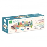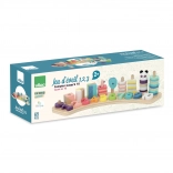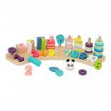 Učenje poteka skozi igro: otroci natikajo in vstavljajo koščke, razvrščajo barve in oblike ter korak za korakom osvajajo računanje od 1 do 10. Komplet je zasnovan s strani strokovnjakov tako, da spodbuja samostojno raziskovanje in sledi principom Montessori.