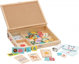 Ta mala šolska tabla v omarici je idealen pripomoček za predšolske otroke in mlajše šolarje. Z njo si bodo urili pisanje, računanje in širili besedišče v angleščini in francoščini. Barvite ilustracije Ingele P. Arrhenius spodbujajo ustvarjalnost in veselje do učenja.